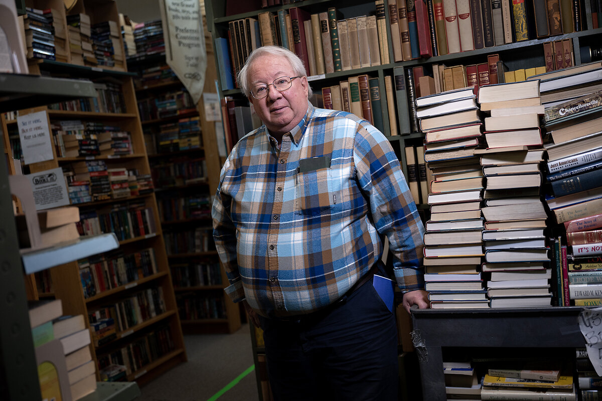 Tom Lowry, decades-long mayor of Three Rivers, Michigan, poses on Oct. 10, 2025, in the bookstore he owns in town. After unsafe levels of lead were discovered in the water system due to aging pipes, Mr. Lowry says Three Rivers can repurpose an existing bond and put it toward fixing the lead problem.